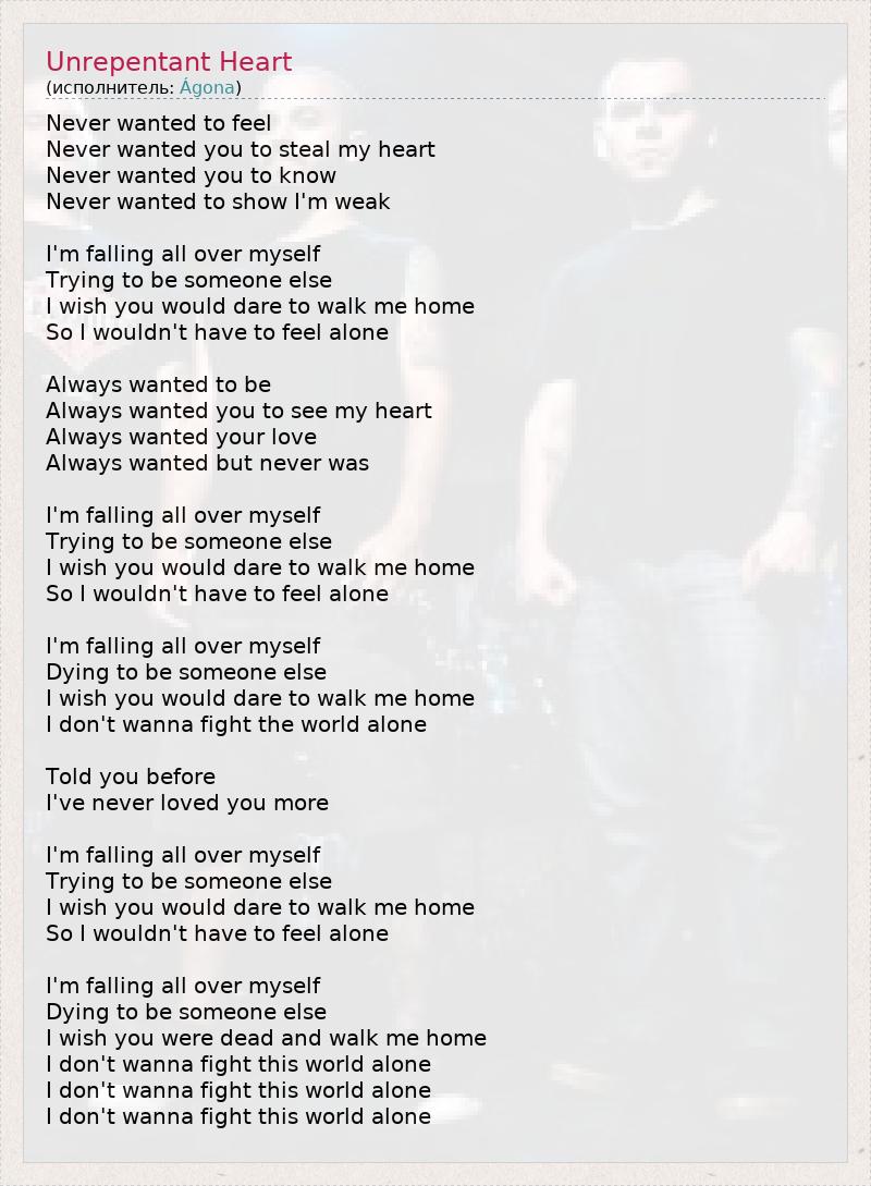 А как ты думаешь, о чем песня "Unrepentant Heart" ?
