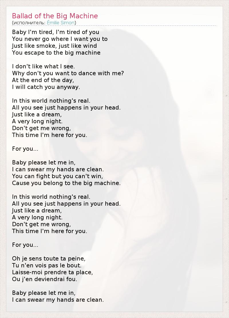 А как ты думаешь, о чем песня "Ballad of the Big Machine" ?