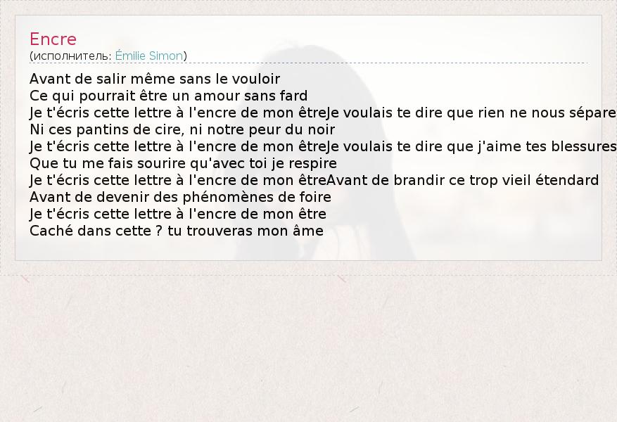 А как ты думаешь, о чем песня "Encre" ?