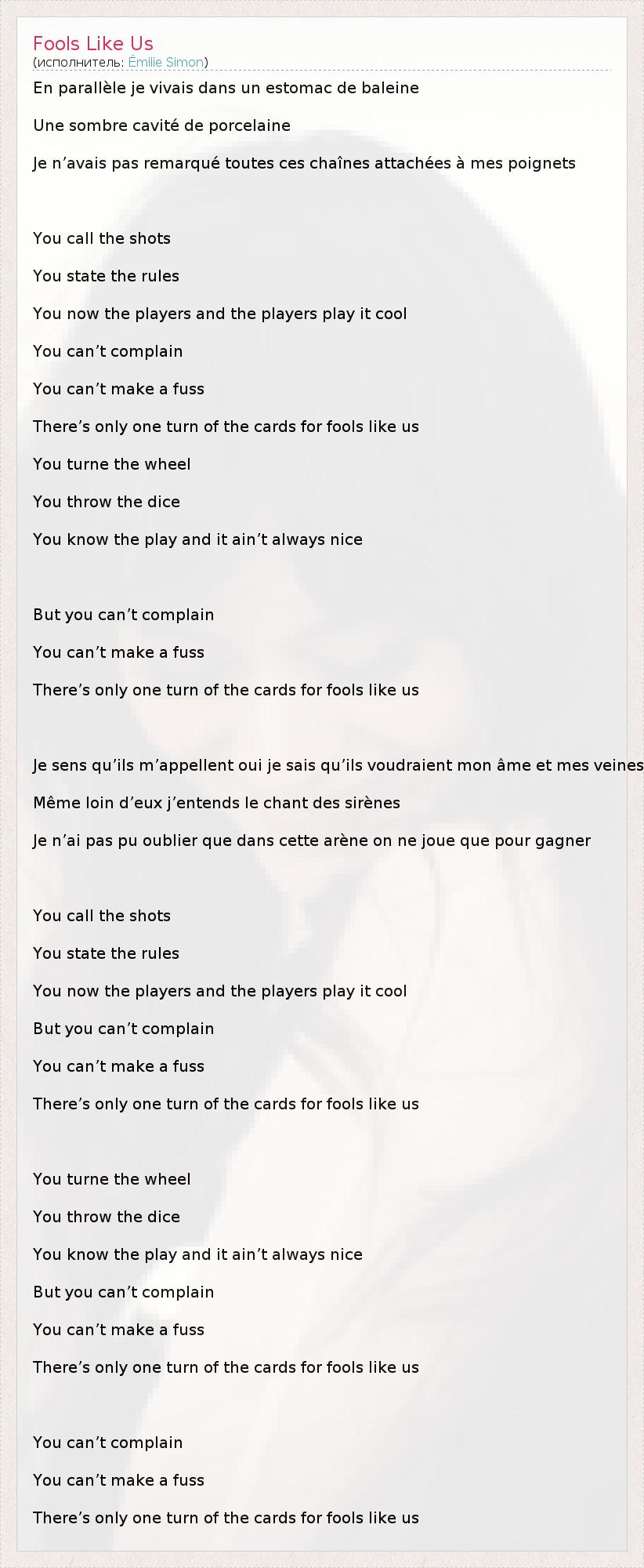 А как ты думаешь, о чем песня "Fools Like Us" ?