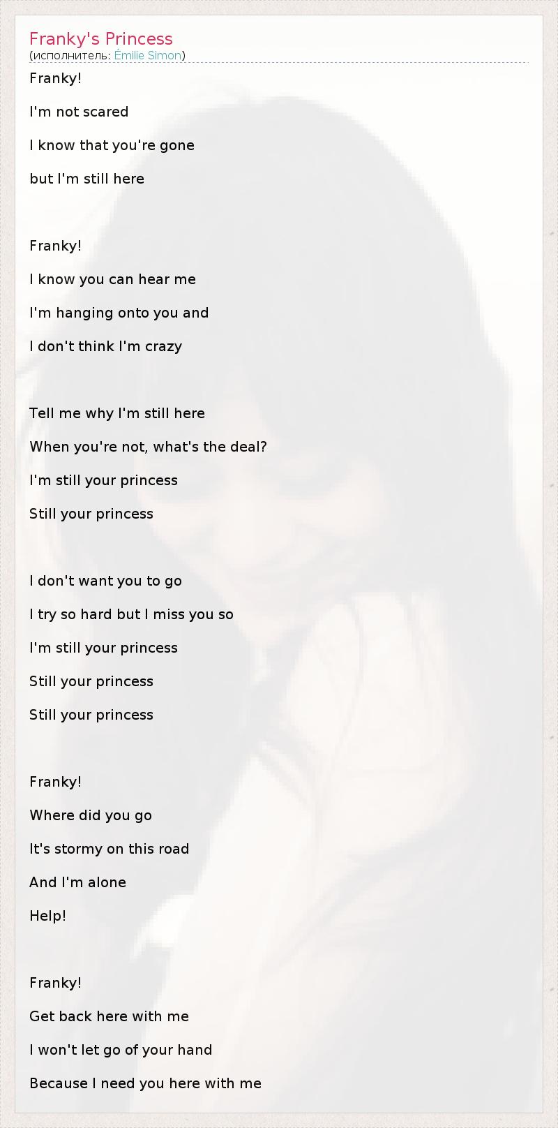 А как ты думаешь, о чем песня "Franky's Princess" ?