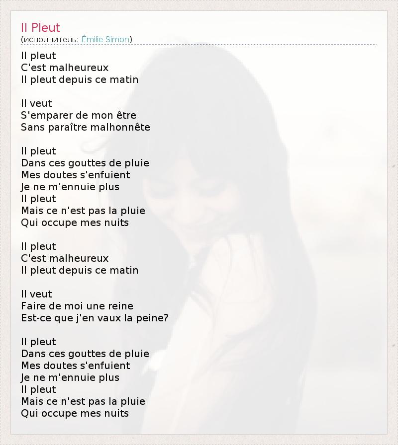 А как ты думаешь, о чем песня "Il Pleut" ?