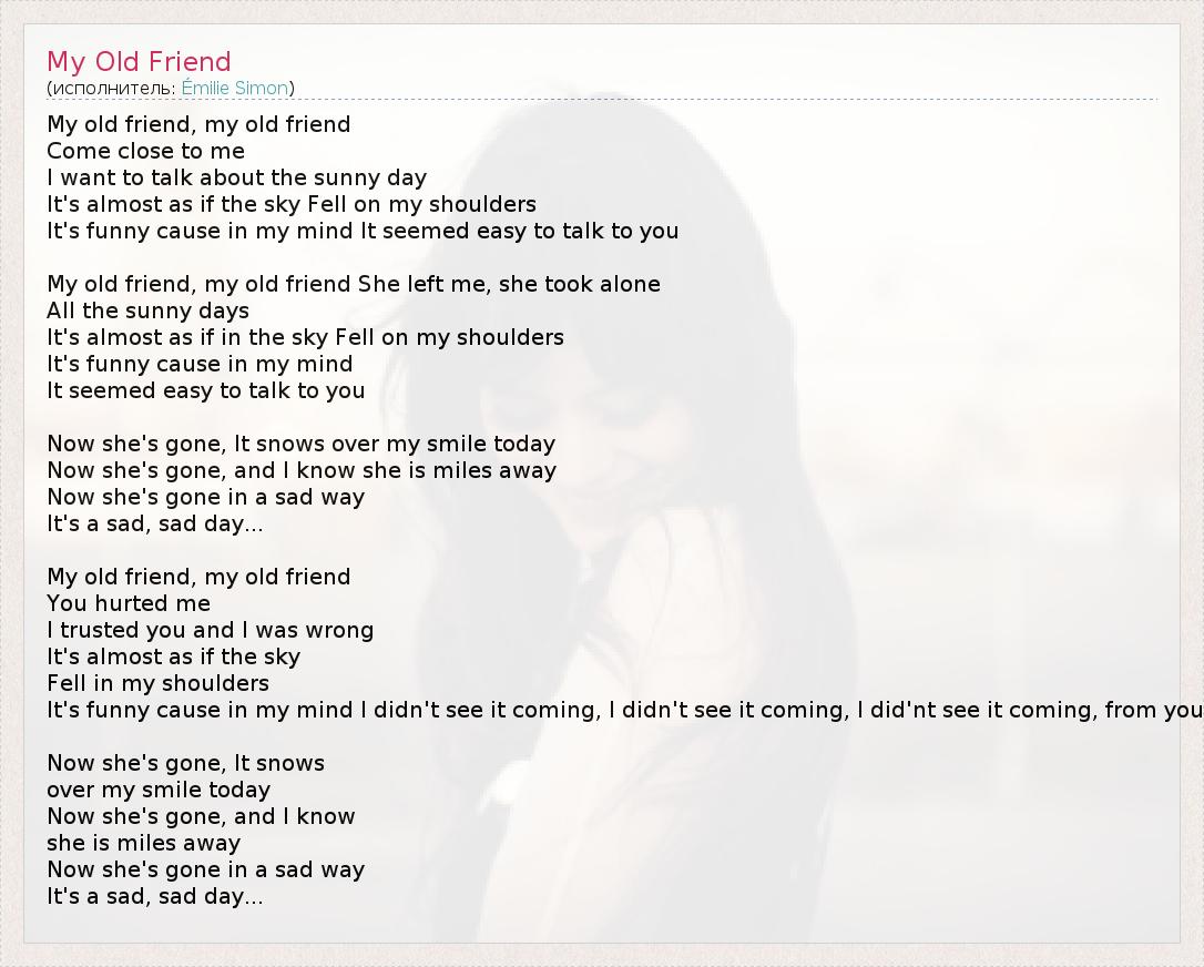А как ты думаешь, о чем песня "My Old Friend" ?