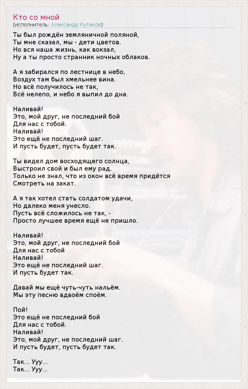 А как ты думаешь, о чем песня "Кто со мной" ?