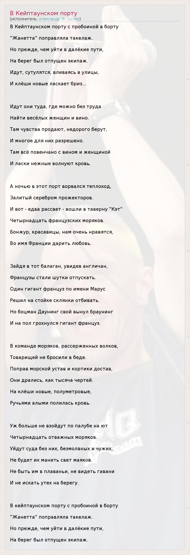 А как ты думаешь, о чем песня "В Кейптаунском порту" ?