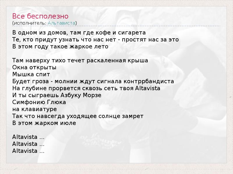 А как ты думаешь, о чем песня "Все бесполезно" ?