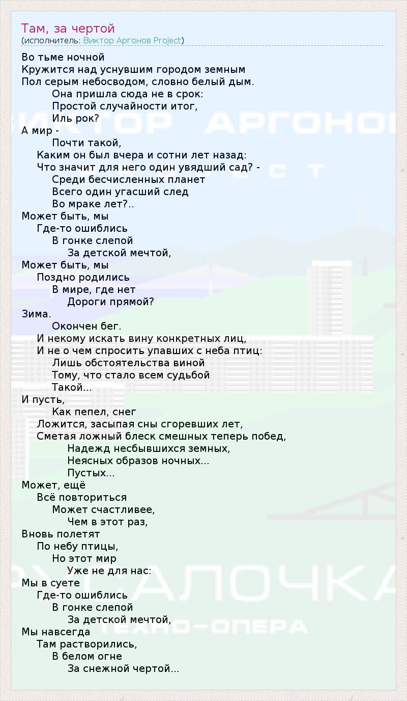 А как ты думаешь, о чем песня "Там, за чертой" ?