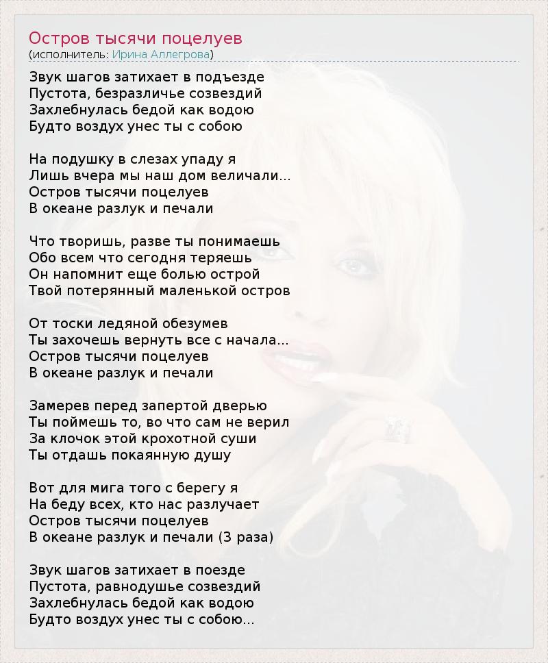 ГлавнаяИсполнителиИрина АллегроваОстров тысячи поцелуев