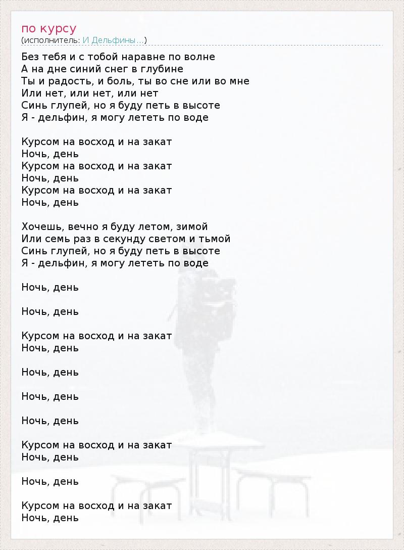 А как ты думаешь, о чем песня "по курсу" ?