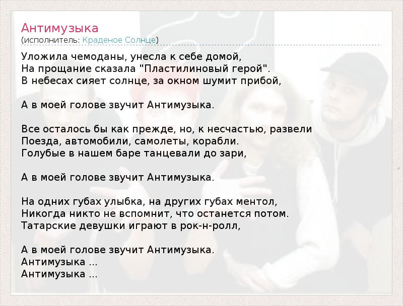 А как ты думаешь, о чем песня "Антимузыка" ?