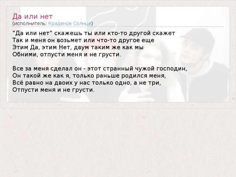 Это интересно:Группа "Краденое Солнце" образовалась в 1993 году в Санкт-Петербурге. Днем рождения коллектива считается 27 марта - дата первого выступления, которое состоялось на сцене ДК Сталепрокатного завода. Первоначальный состав: А.Козьяков, К.Кузин, П.Ключарев. Впоследствии группа время от времени пополнялась и разрасталась, в частности в начале 1994 года к коллективу в качестве вокалиста присоединился... продолжение