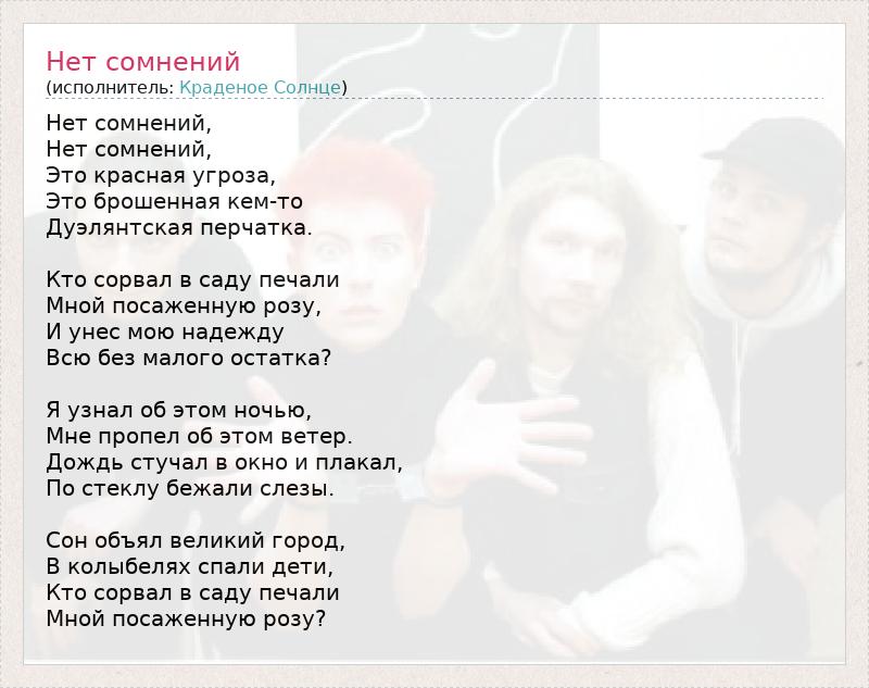 А как ты думаешь, о чем песня "Нет сомнений" ?