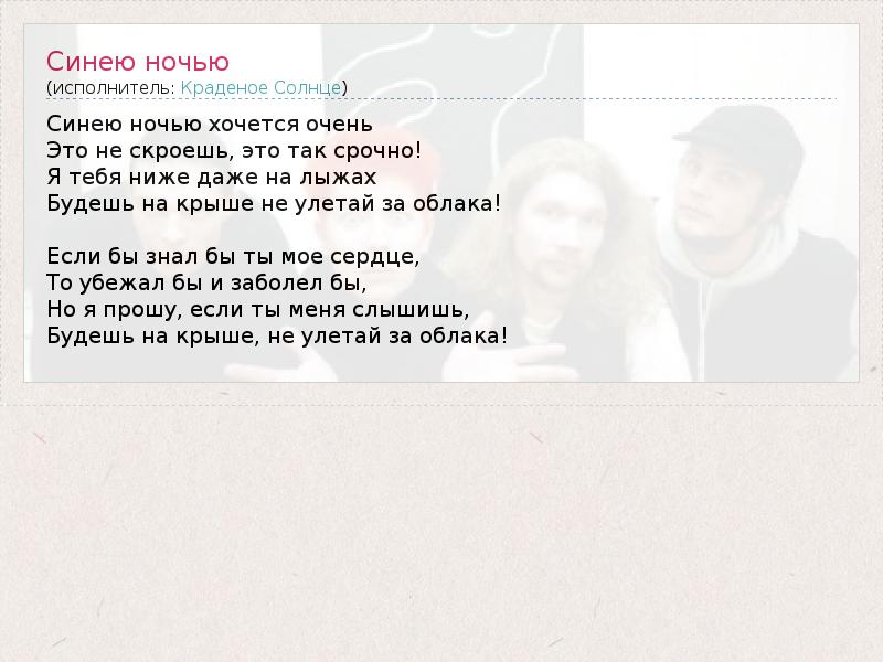 А как ты думаешь, о чем песня "Синею ночью" ?