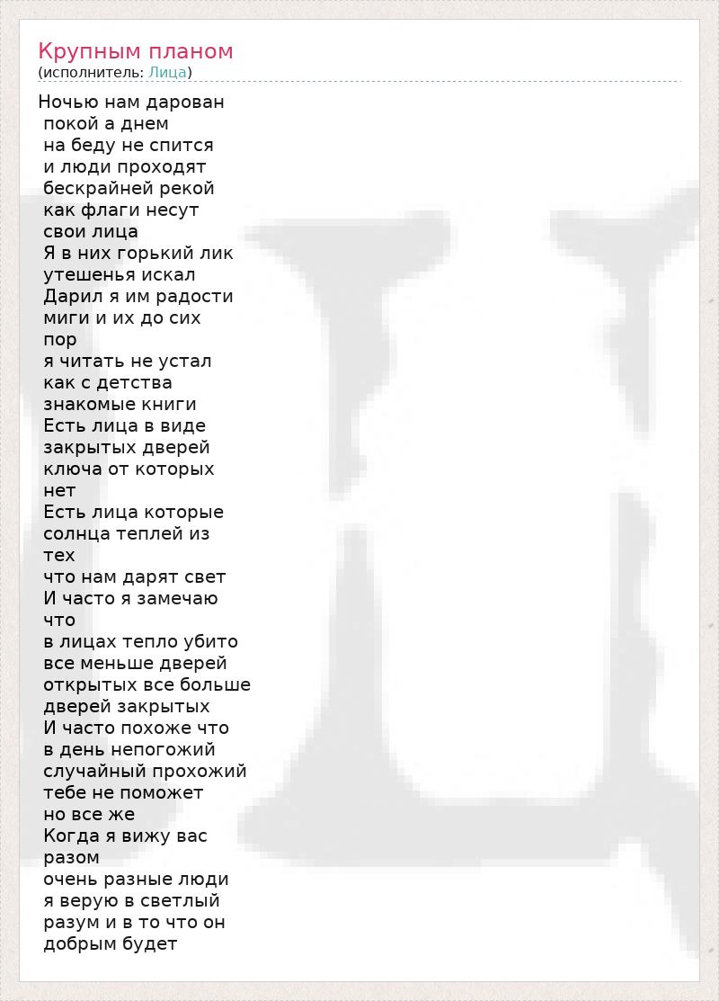 А как ты думаешь, о чем песня "Крупным планом" ?