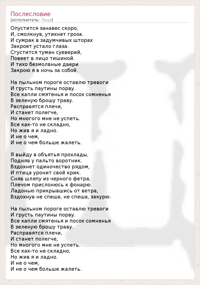 Это интересно:Если вы слушаете хип-хоп группу "Лица" ,просьба тегать так: "Группа Лица".Группа ЛИЦ@ родилась на осколках двух групп: Post Scriptum и Полная Неизвестность.На дворе стояла ранняя осень 2004…Саня «А.А.» Ададуров и Вовчик «Пропан» Добрицкий, а так же Андрей «Зай» Зайцев, решили вместе начать делать качественную, можно даже сказать, профессионально аранжированную, музыку.Пока... продолжение