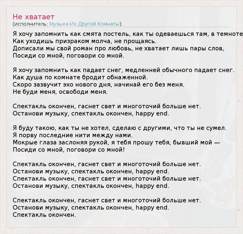 Дописали мы свой роман про любовь, не хватает лишь пары слов,