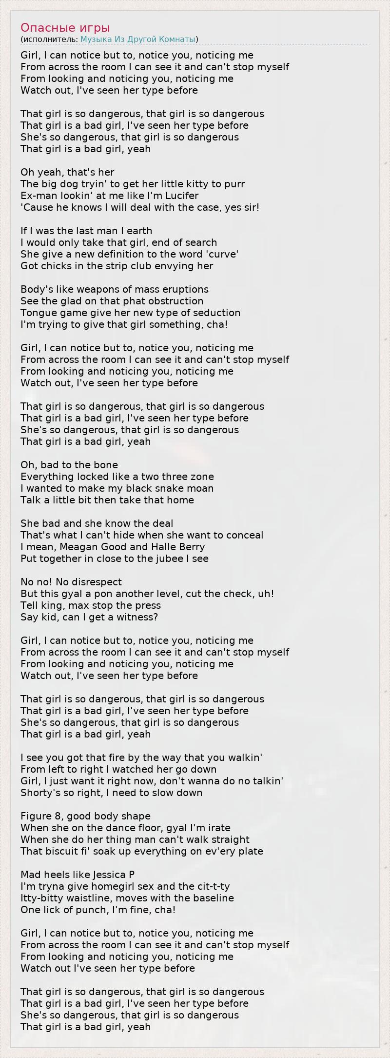 That girl is so dangerous, that girl is so dangerous