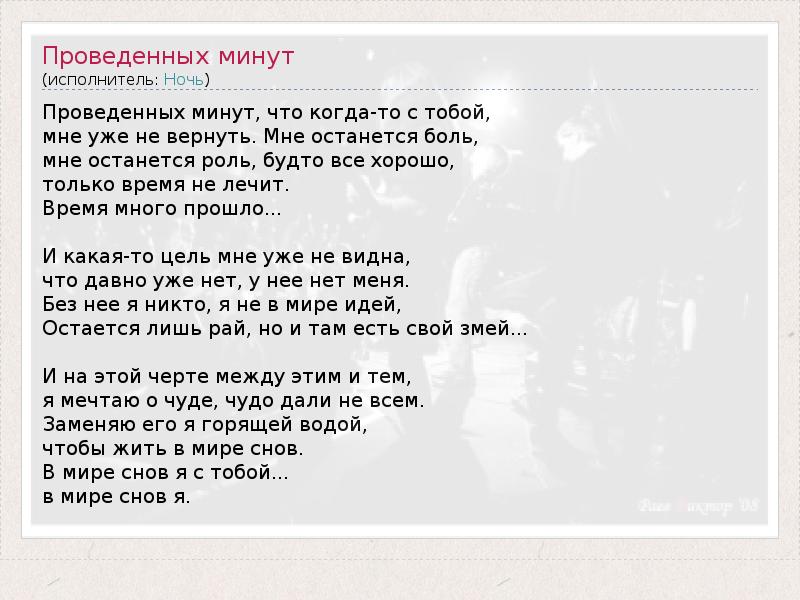 А как ты думаешь, о чем песня "Проведенных минут" ?