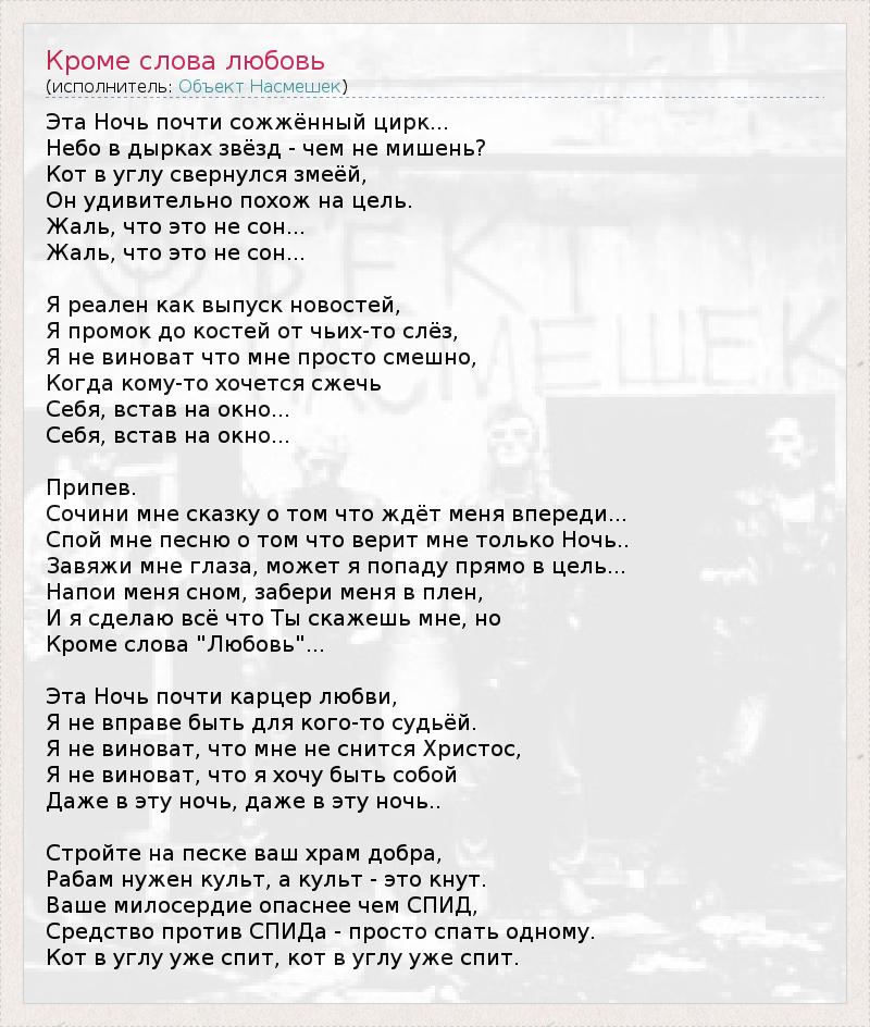 А как ты думаешь, о чем песня "Кроме слова любовь" ?