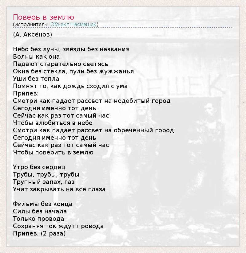 А как ты думаешь, о чем песня "Поверь в землю" ?