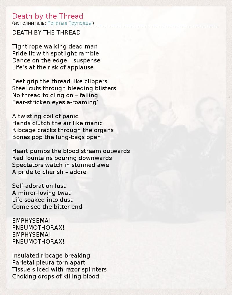 А как ты думаешь, о чем песня "Death by the Thread" ?