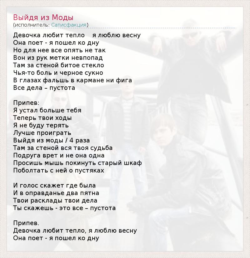 А как ты думаешь, о чем песня "Выйдя из Моды" ?