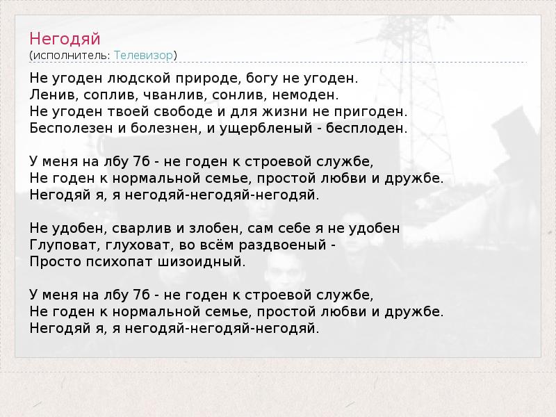 Это интересно:Группа "Телевизор" образовалась в Ленинграде в 1984 году на обломках арт-роковой группы "Озеро" и дебютировала сразу на 2 фестивале Ленинградского Рок-клуба 1984 года, войдя в число лауреатов, причем лидер группы, студент английского отделения филфака Ленинградского ГосУниверситета Михаил Борзыкин был отдельно отмечен как автор лучших текстов. Столь же успешно выступил "Телевизор"... продолжение