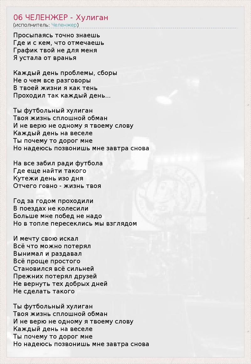 А как ты думаешь, о чем песня "06 ЧЕЛЕНЖЕР - Хулиган" ?