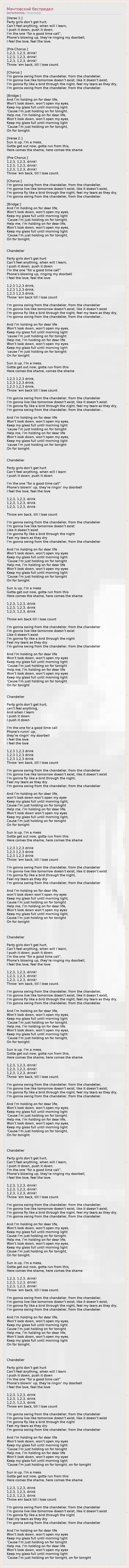 I'm gonna swing from the chandelier, from the chandelier