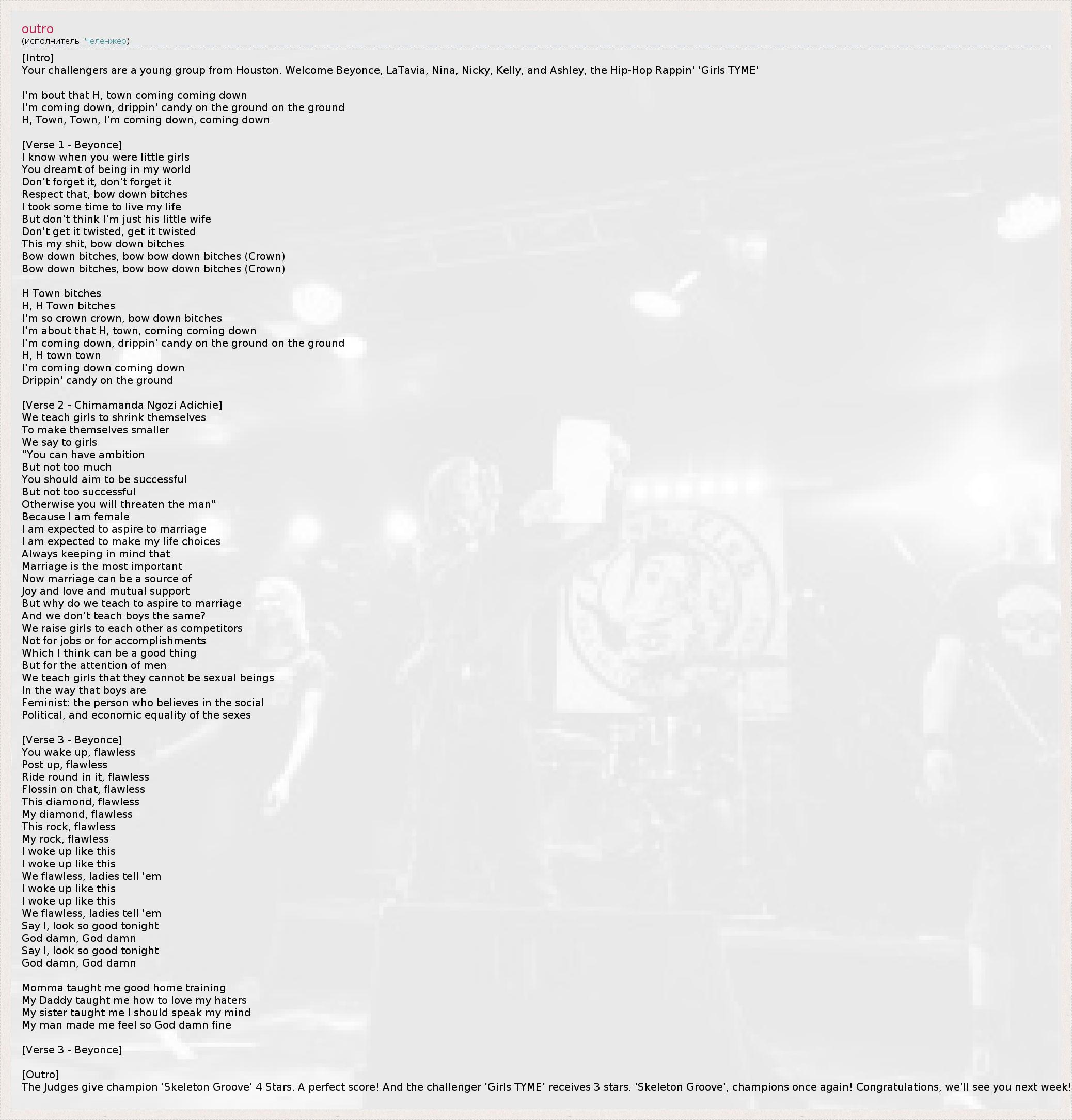 [Куплет 2: Chimamanda Ngozi Adichie]