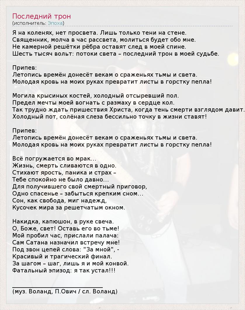 ГлавнаяИсполнителиЭпохаПоследний трон