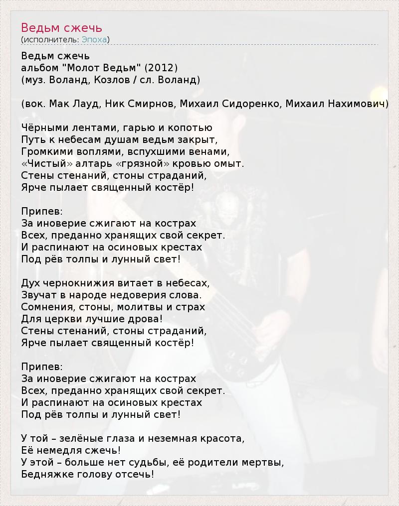 А как ты думаешь, о чем песня "Ведьм сжечь" ?