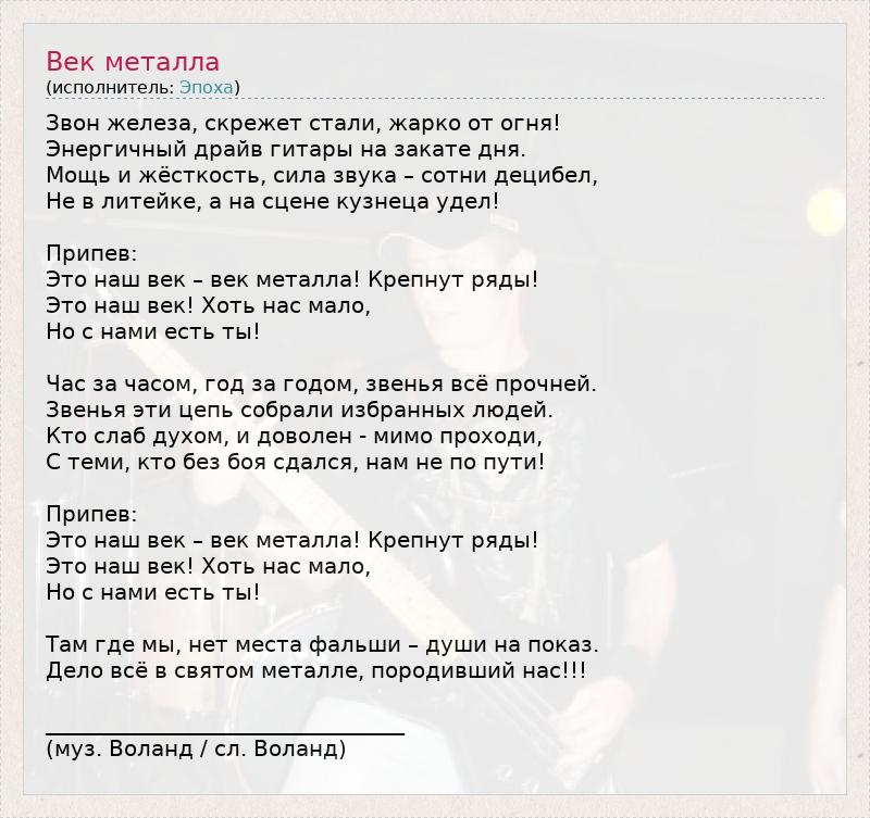 Это наш век – век металла! Крепнут ряды!