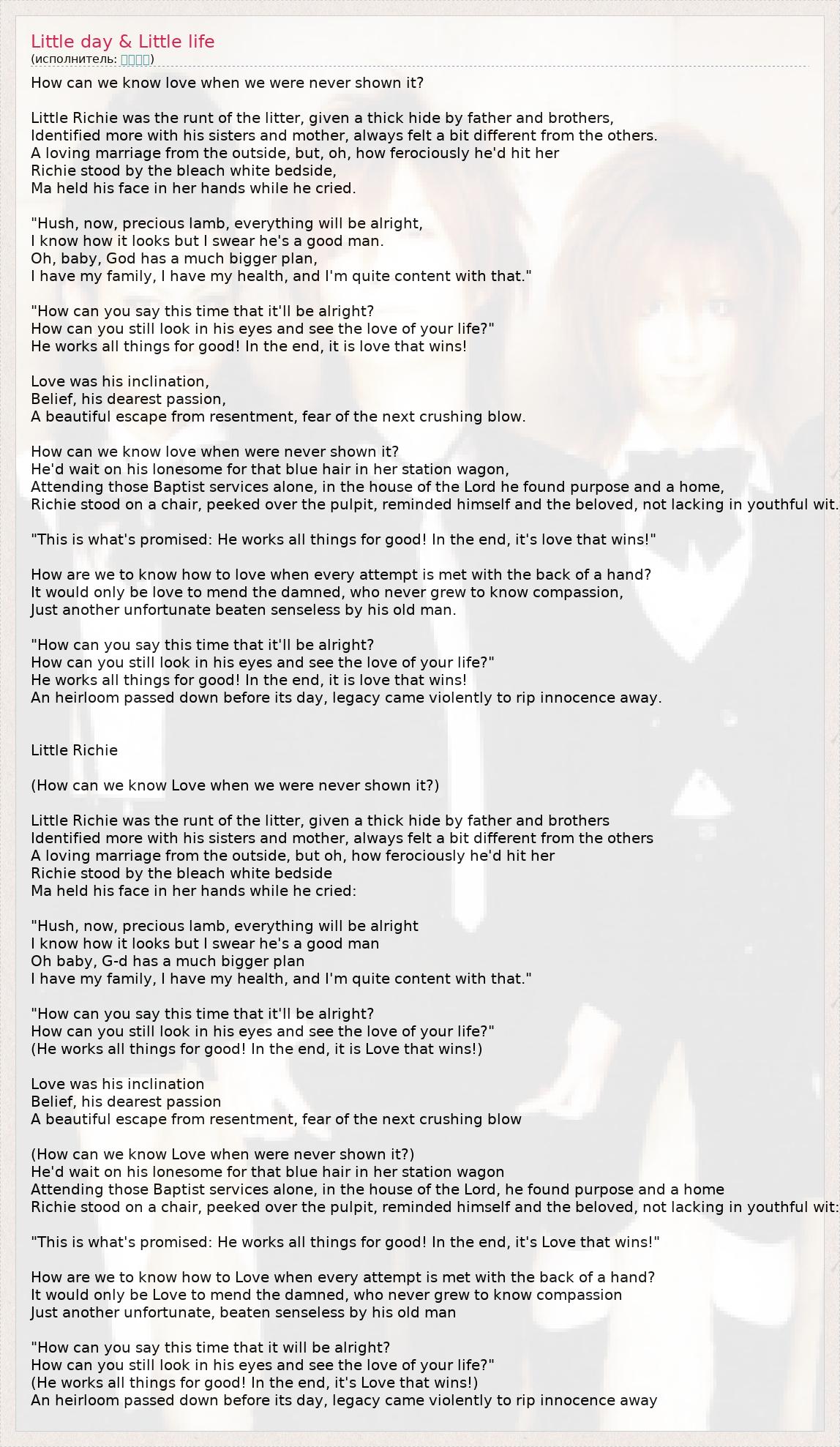 А как ты думаешь, о чем песня "Little day & Little life" ?