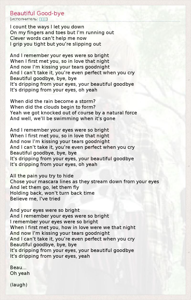 А как ты думаешь, о чем песня "Beautiful Good-bye" ?