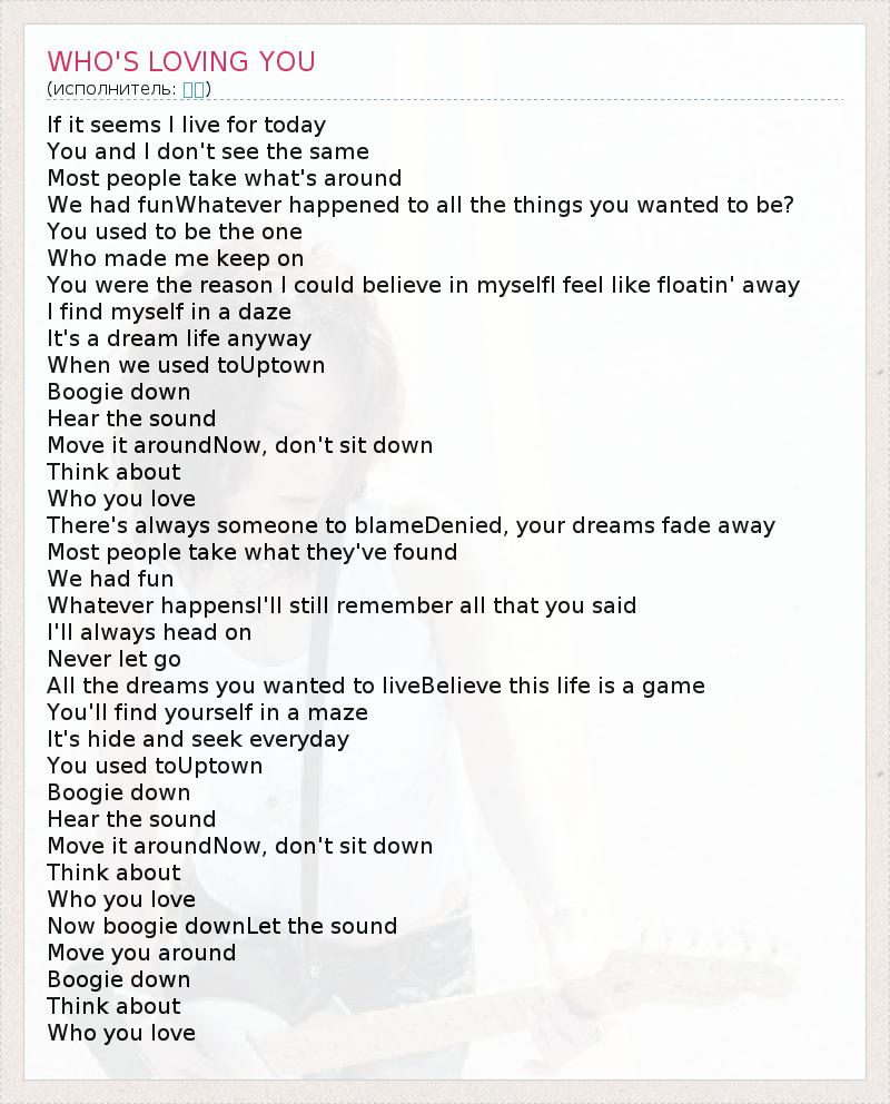 А как ты думаешь, о чем песня "WHO'S LOVING YOU" ?