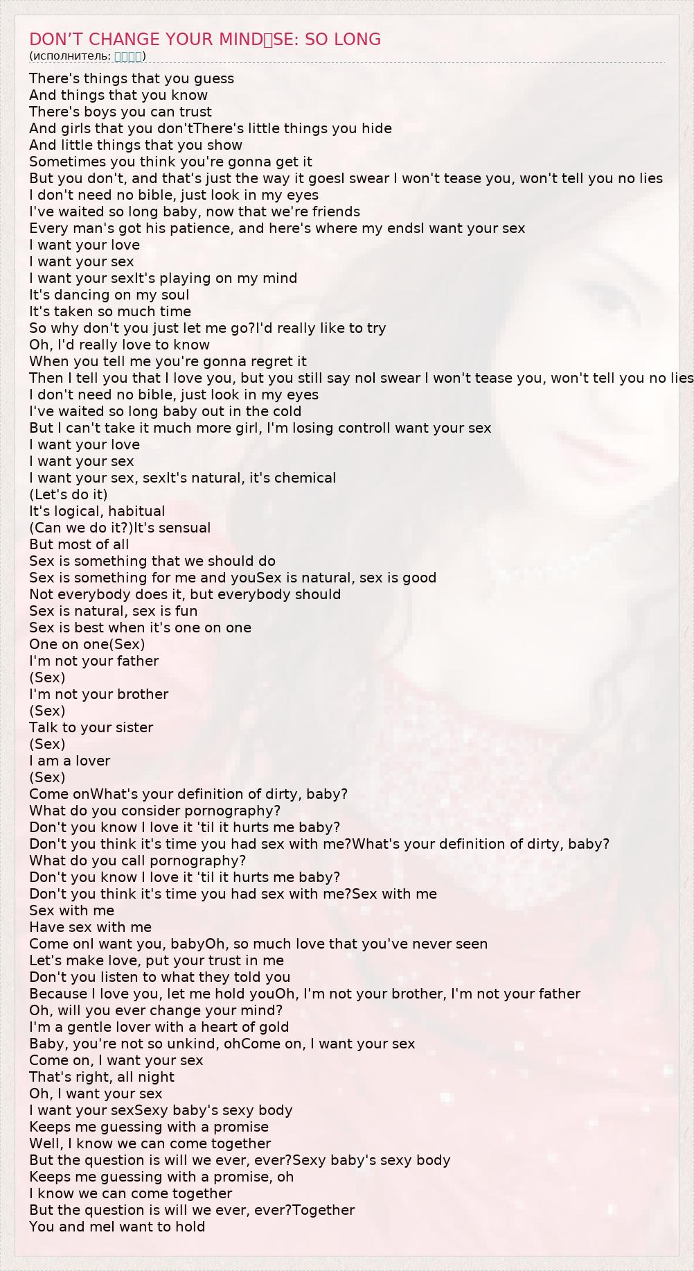 I want your sexIt's playing on my mind