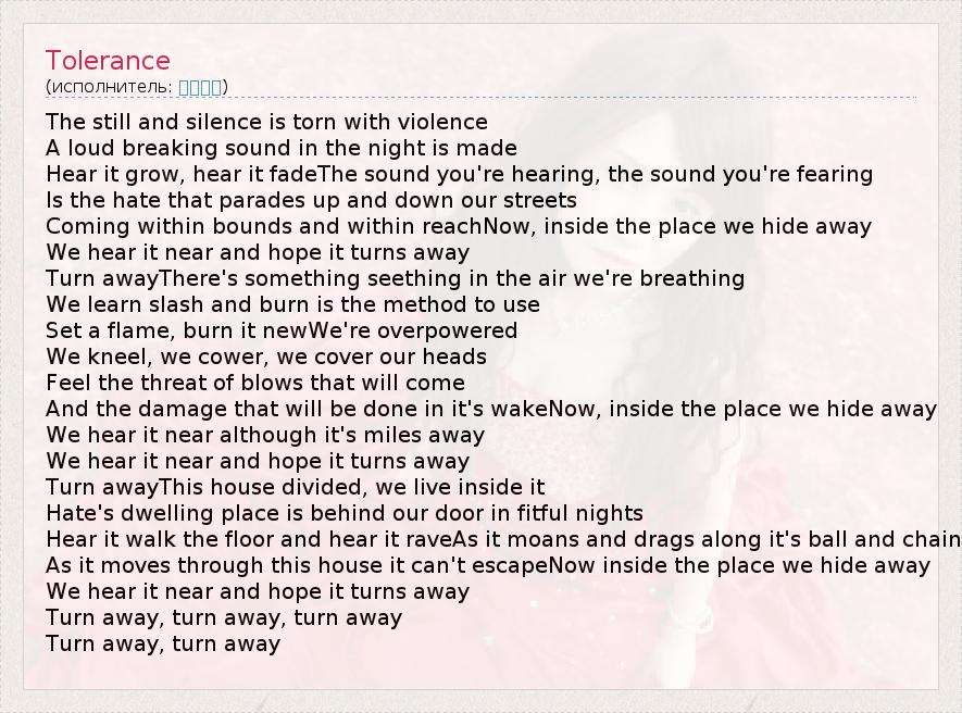 А как ты думаешь, о чем песня "Tolerance" ?