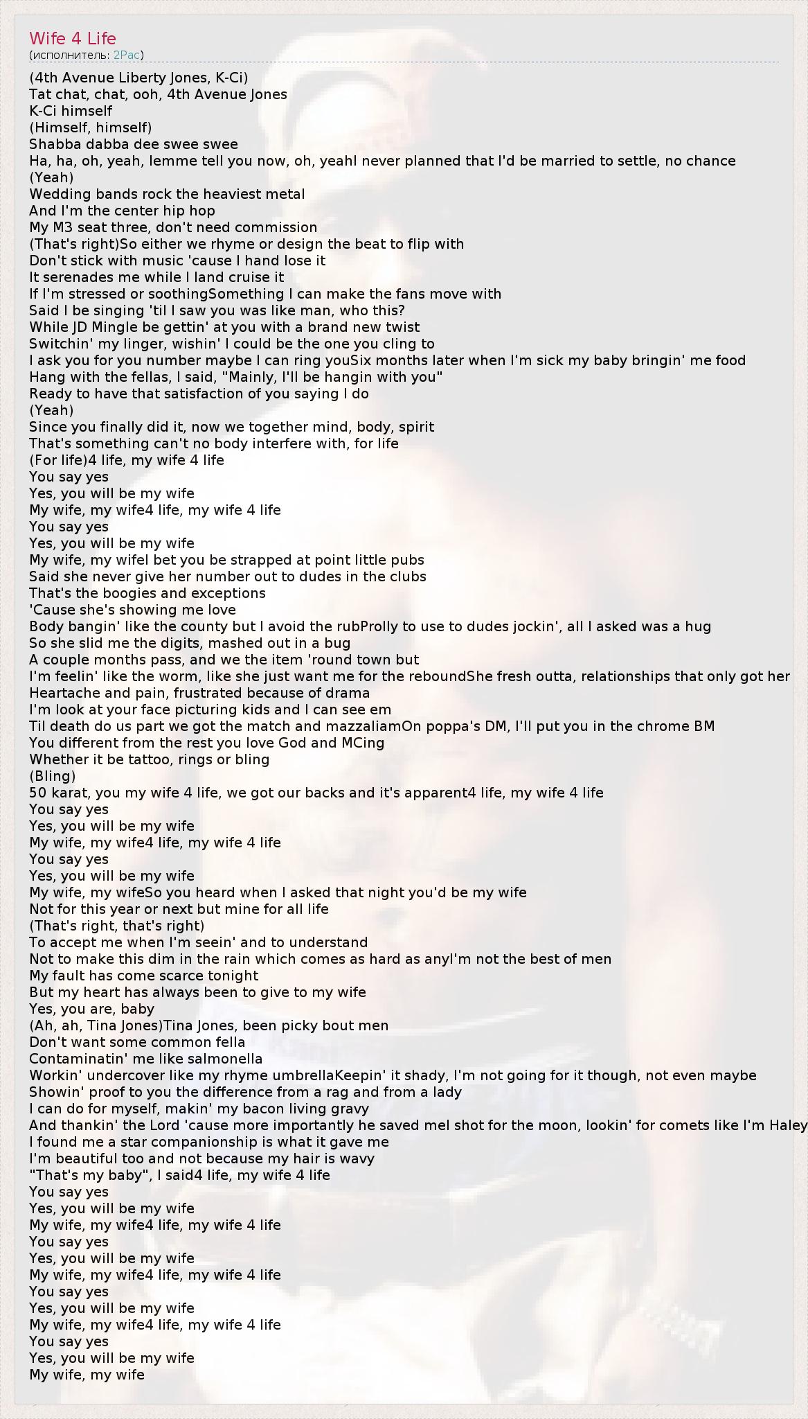 А как ты думаешь, о чем песня "Wife 4 Life" ?