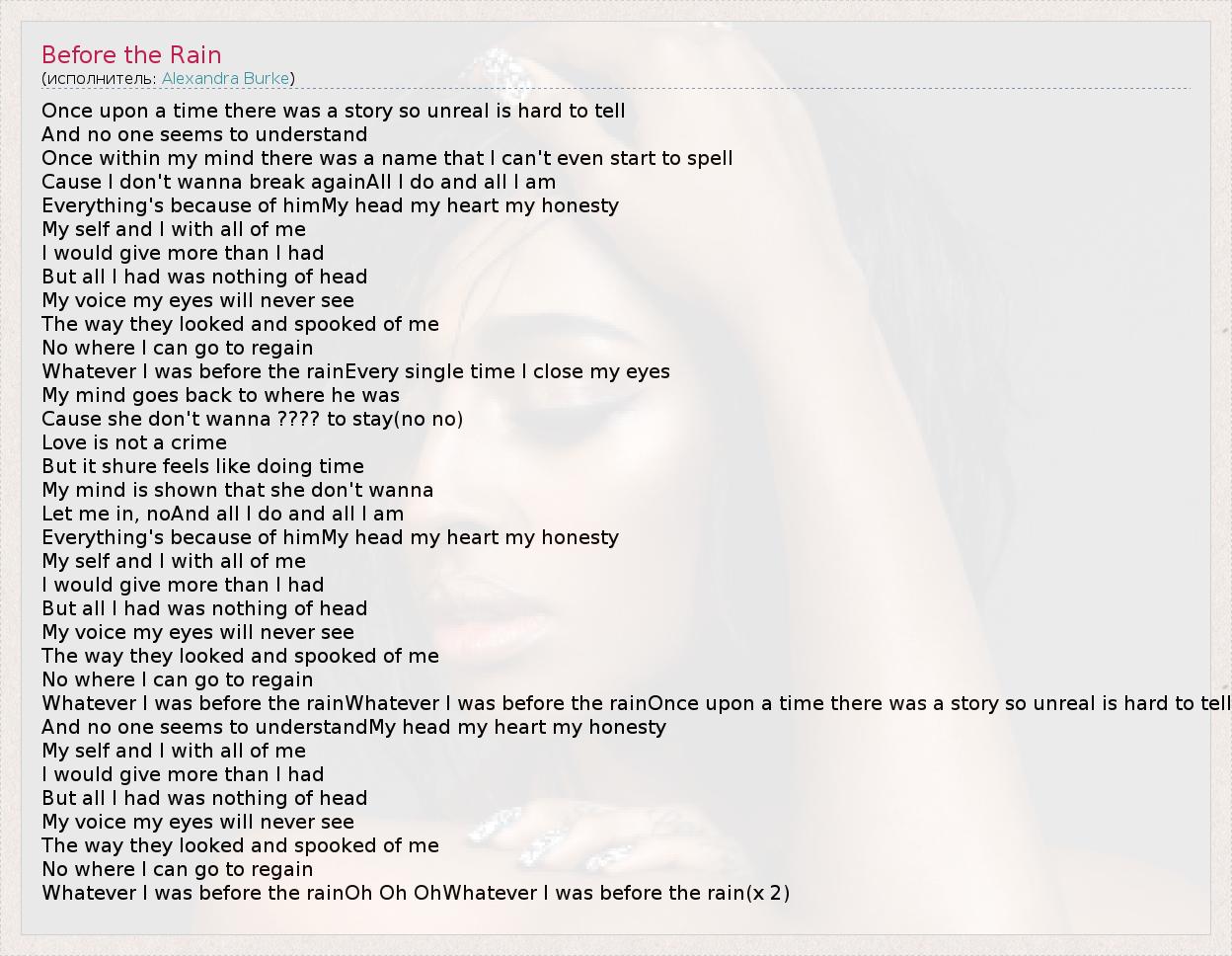 А как ты думаешь, о чем песня "Before the Rain" ?