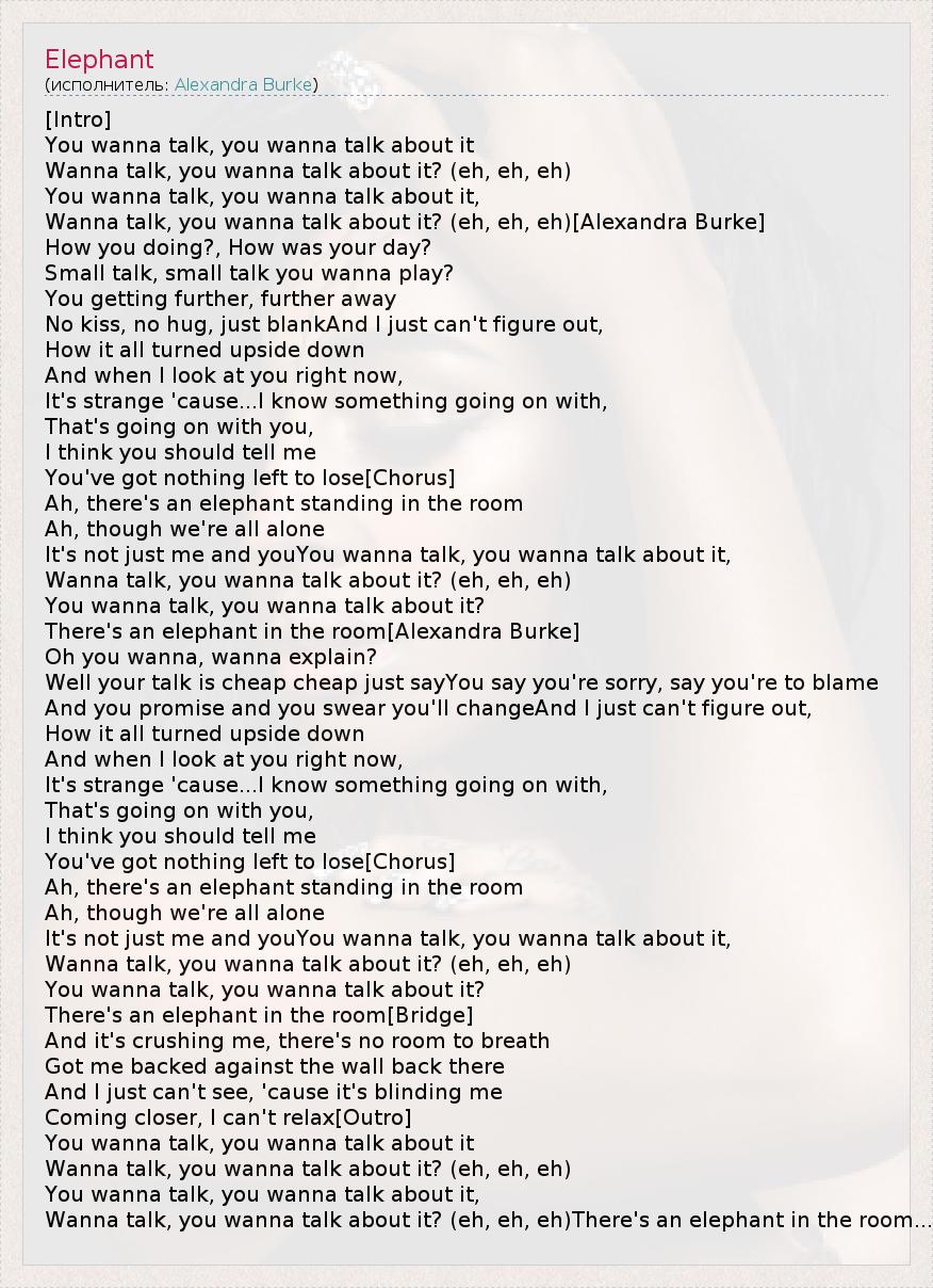 Wanna talk, you wanna talk about it? (eh, eh, eh)There's an elephant in the room...