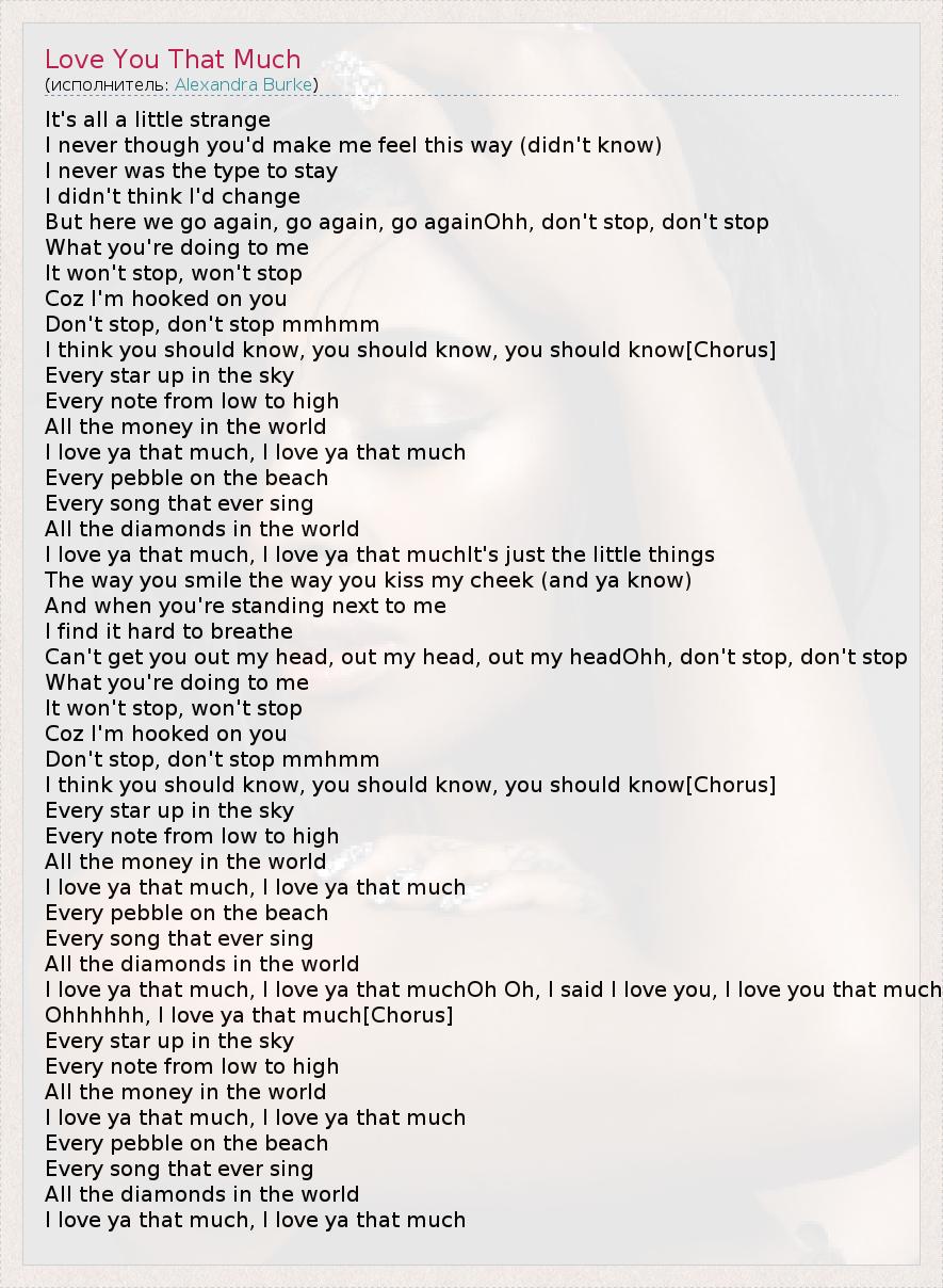 А как ты думаешь, о чем песня "Love You That Much" ?