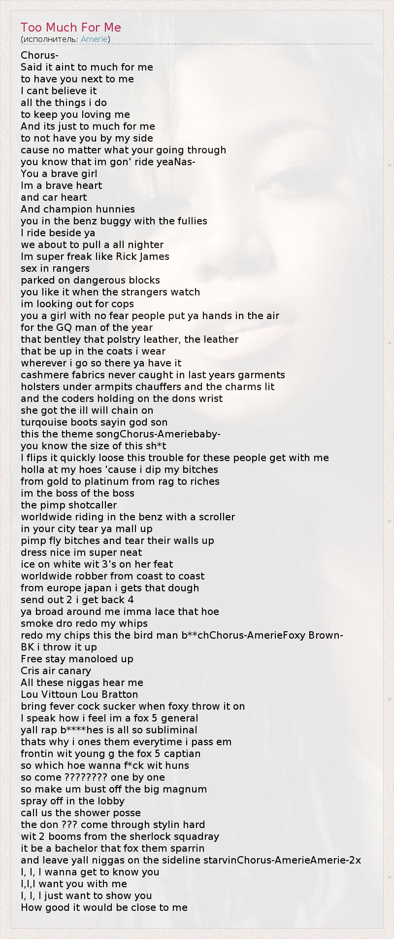 А как ты думаешь, о чем песня "Too Much For Me" ?