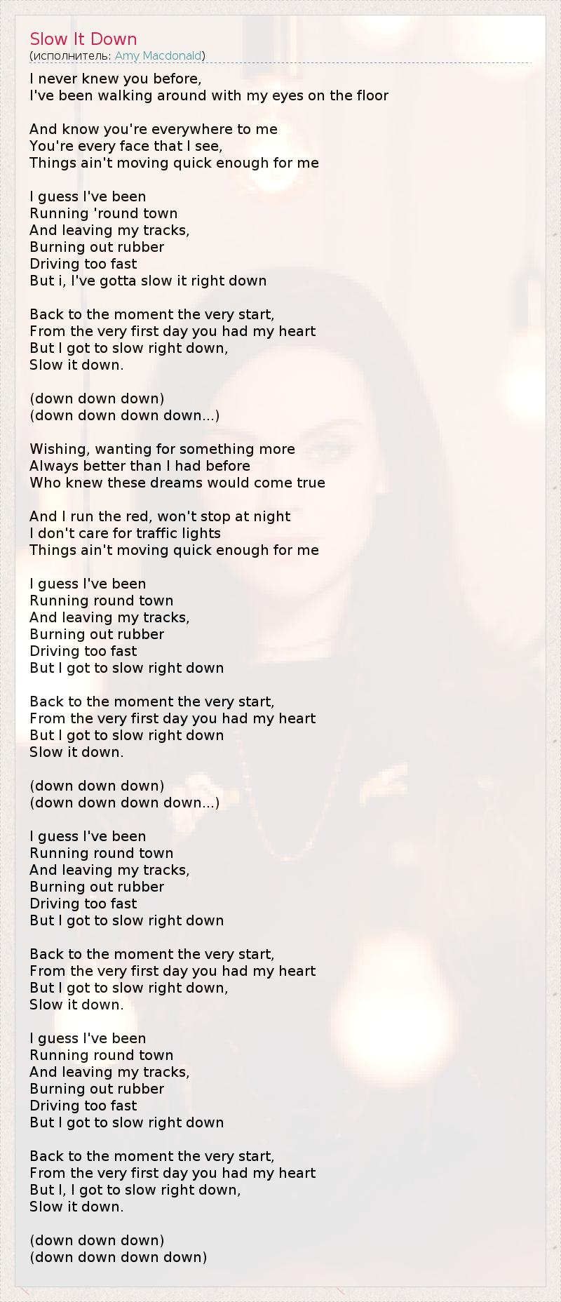 А как ты думаешь, о чем песня "Slow It Down" ?