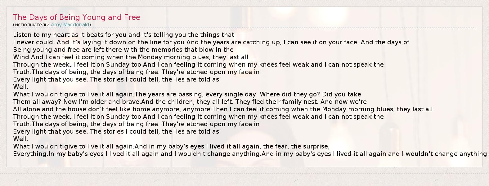 ГлавнаяИсполнителиAmy MacdonaldThe Days of Being Young and Free