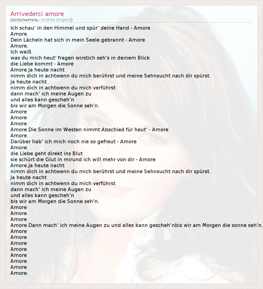 Amore.Dann mach' ich meine Augen zu und alles kann gescheh'nbis wir am Morgen die sonne seh'n.