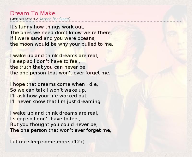 А как ты думаешь, о чем песня "Dream To Make" ?