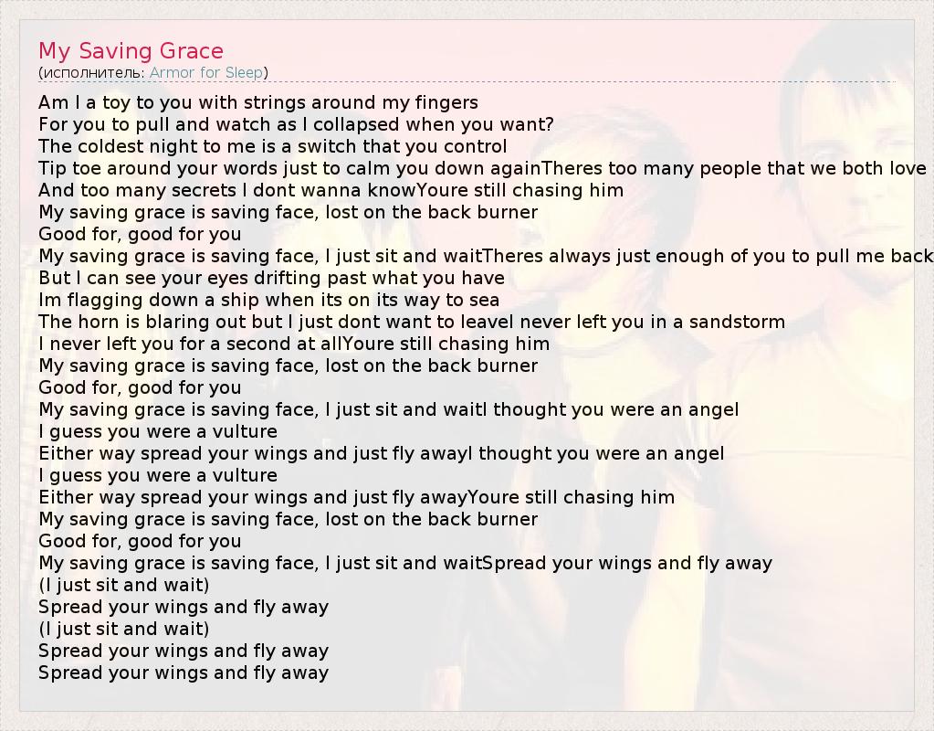 А как ты думаешь, о чем песня "My Saving Grace" ?