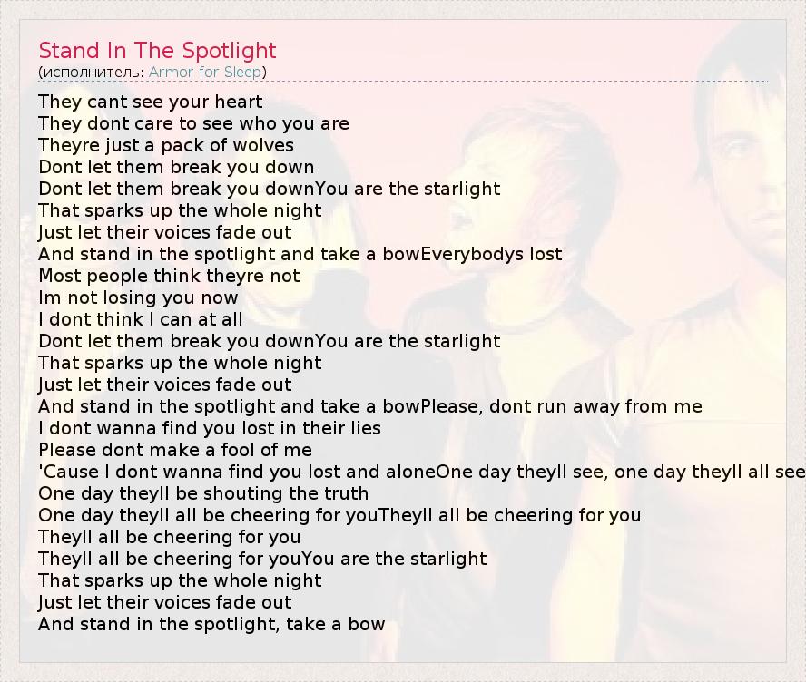 А как ты думаешь, о чем песня "Stand In The Spotlight" ?