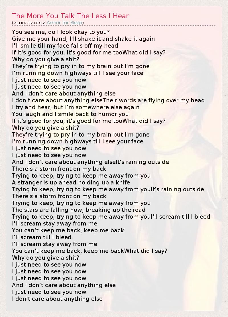 ГлавнаяИсполнителиArmor for SleepThe More You Talk The Less I Hear